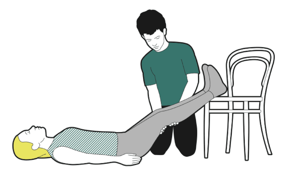 Dacă persoana are dificultăți de respirație sau prezintă senzație de sufocare, ajutați-o să se așeze într-o poziție semi-șezută, cu spatele sprijinit și genunchii îndoiți, pentru a facilita respirația.